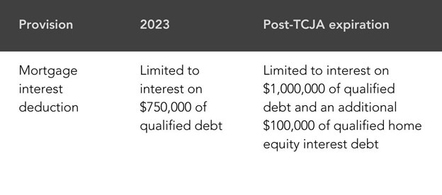 You can deduct mortgage interest on up to $750,000 of qualified debt. In 2025, the rule is scheduled to change, and you may be able to deduct mortgage interest on up to $1,000,000 of qualified debt AND an additional $100,000 of eligible home equity interest debt.